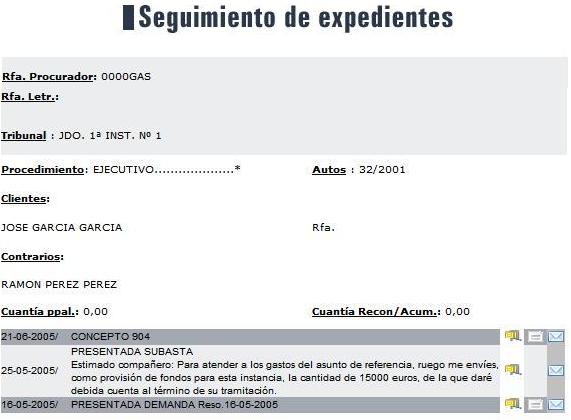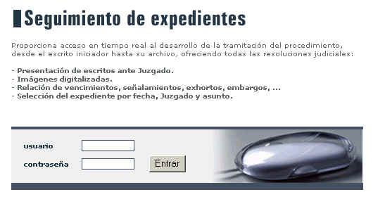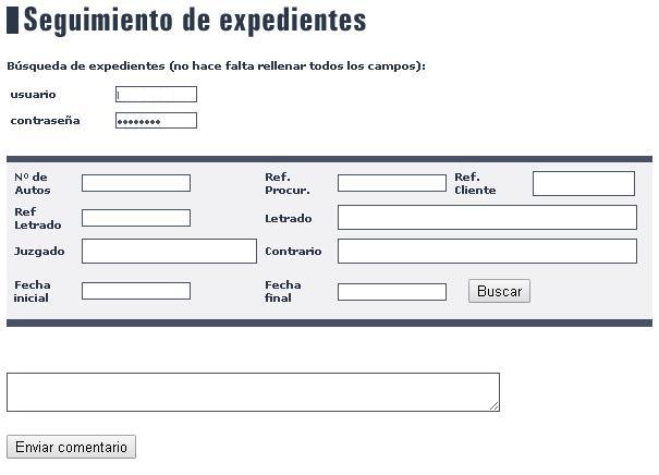 2. Una vez que aparezca esta pantalla, introducimos el usuario y la contraseña asignada por el procurador y entramos en la siguiente pantalla. En caso de que la consulta se efectue como Cliente , aparecerá el siguiente formulario: