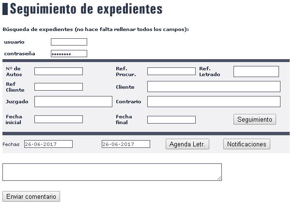En caso de que la consulta se efectue como Letrado, aparecerá el siguiente formulario: