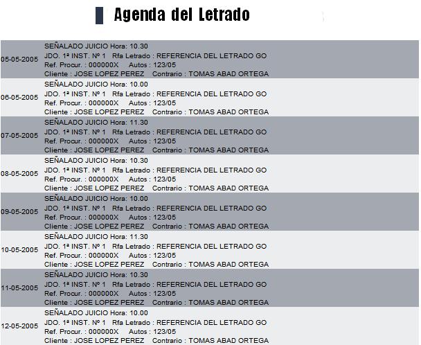 Si queremos la agenda, rellenamos la fecha inicial y final a consultar y pinchamos el botón «Agenda Letr.».